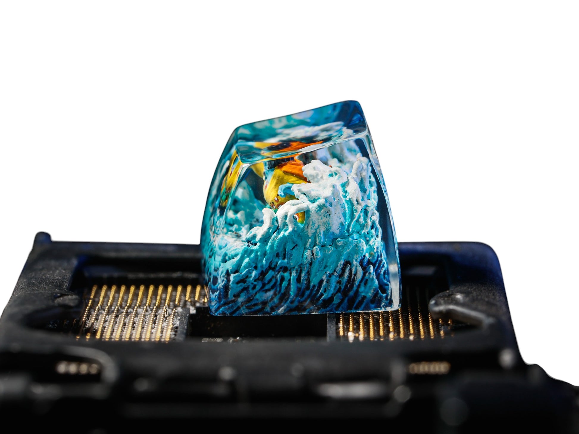 ✨ Beautiful RGB Shine: Designed to complement your illuminated setup, the Keycap Jinbe beautifully interacts with RGB backlighting. While the intricate details are prominently displayed, the resin's properties allow surrounding light to create a captivating glow, enhancing Jinbe's presence and bringing a dynamic visual flair to your desk.