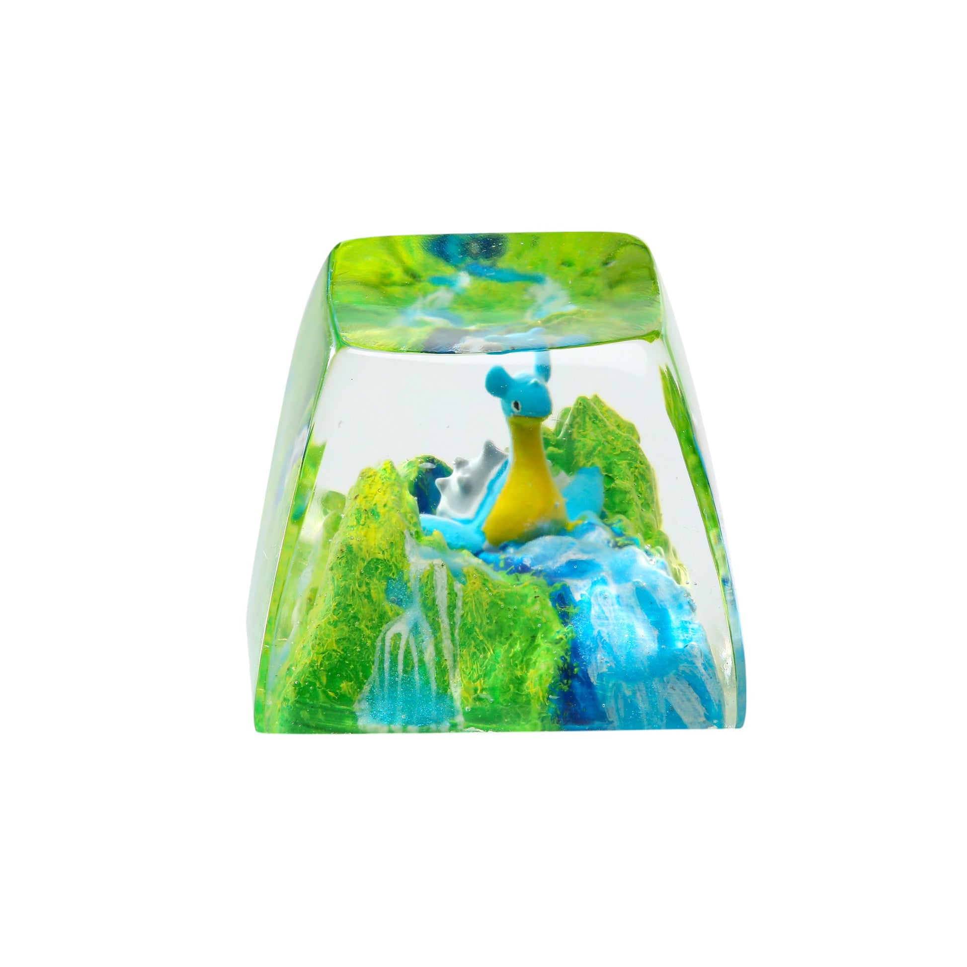 🎨 Finely Handcrafted: Each keycap is meticulously sculpted from premium resin, featuring a hand-painted Lapras swimming in crystal-clear waters, surrounded by detailed rocks and lush moss.