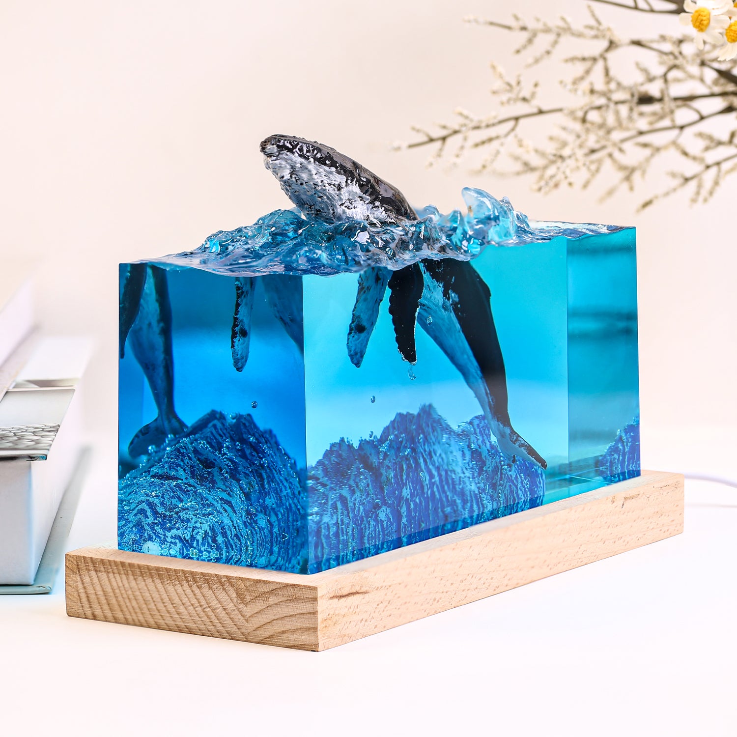 Artistic epoxy lamp inspired by ocean dolphins